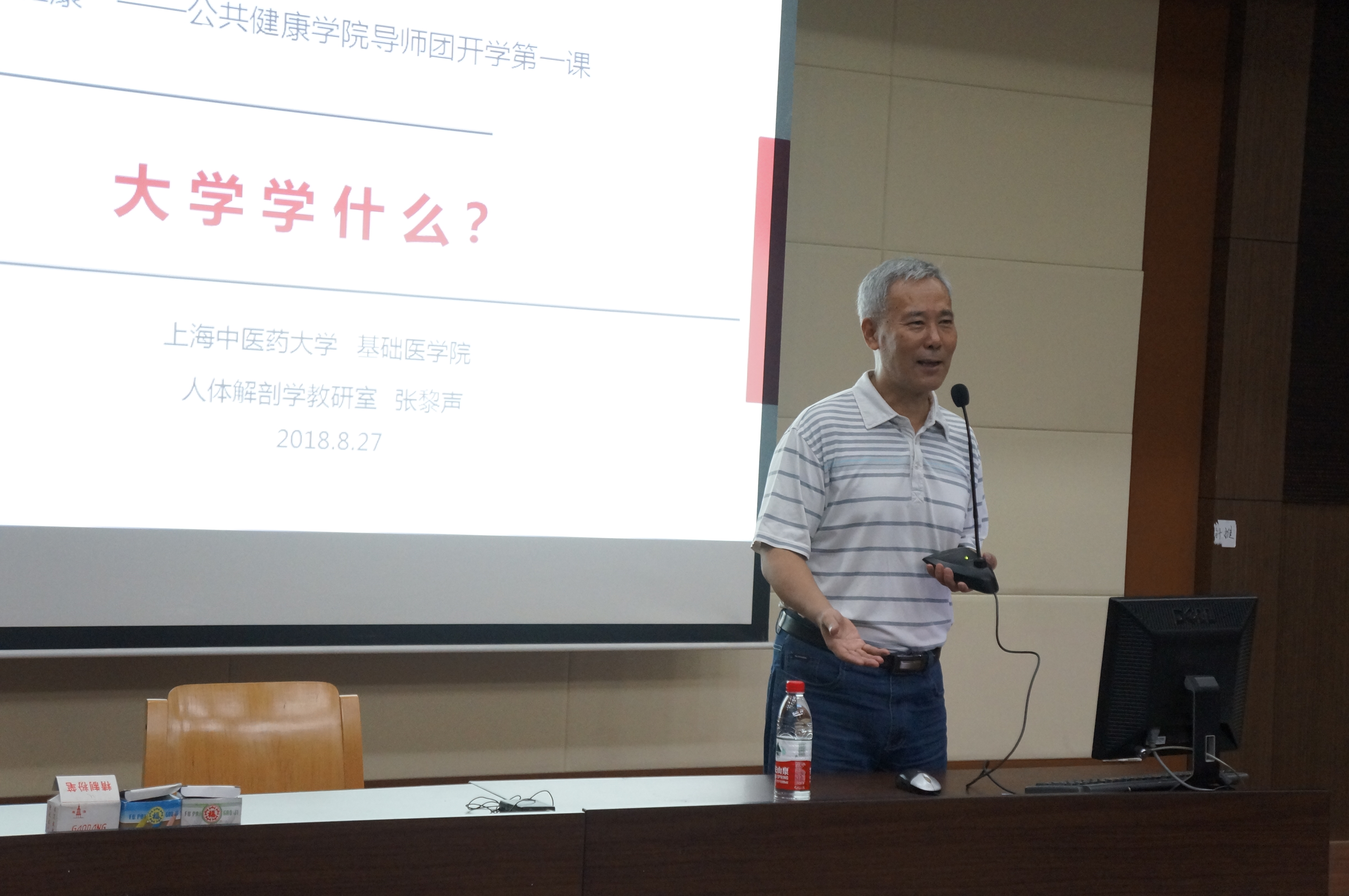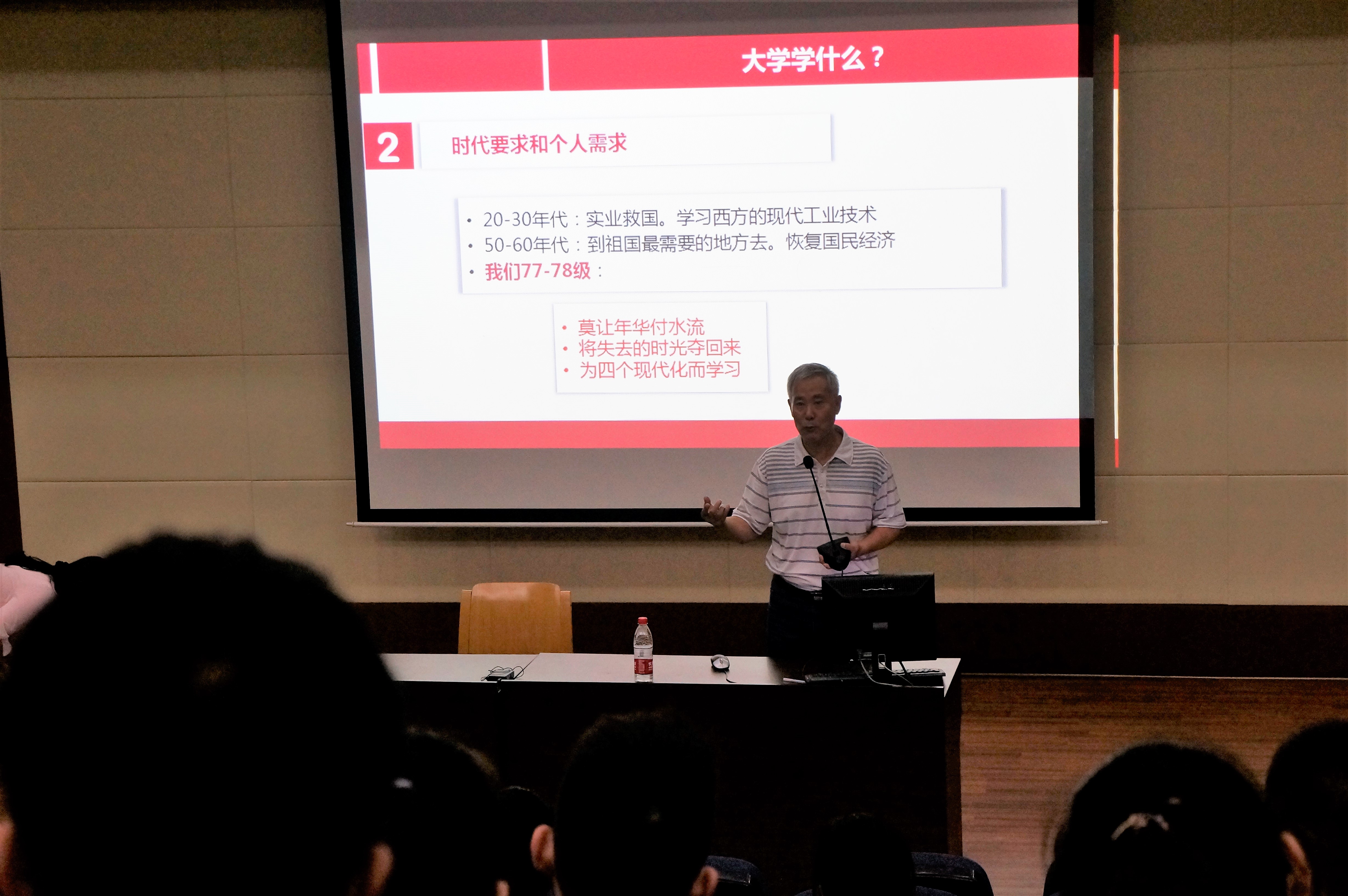 2018年8月27日19点,于6504教室,明德导师团张黎声教授为2018级萌新们开启了大学第一课,目的是使2018级新生尽快融入老员工活,明确学习目标,使个人符合社会需要和时代需求。