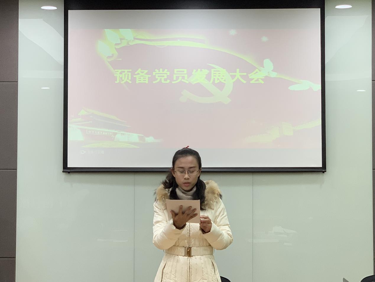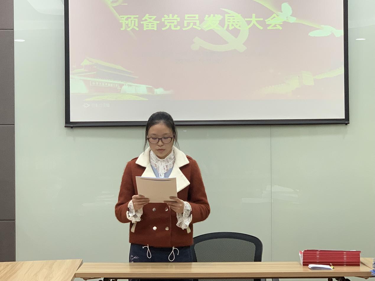 发展大会严格按照中国共产党员发展工作程序,首先由冉秋老师宣读了本次大会流程,清点了参会人数,并强调了会场的纪律。发展对象逐一宣读《入党志愿书》,并向党组织汇报自身对党的认识、入党动机、个人经历等。