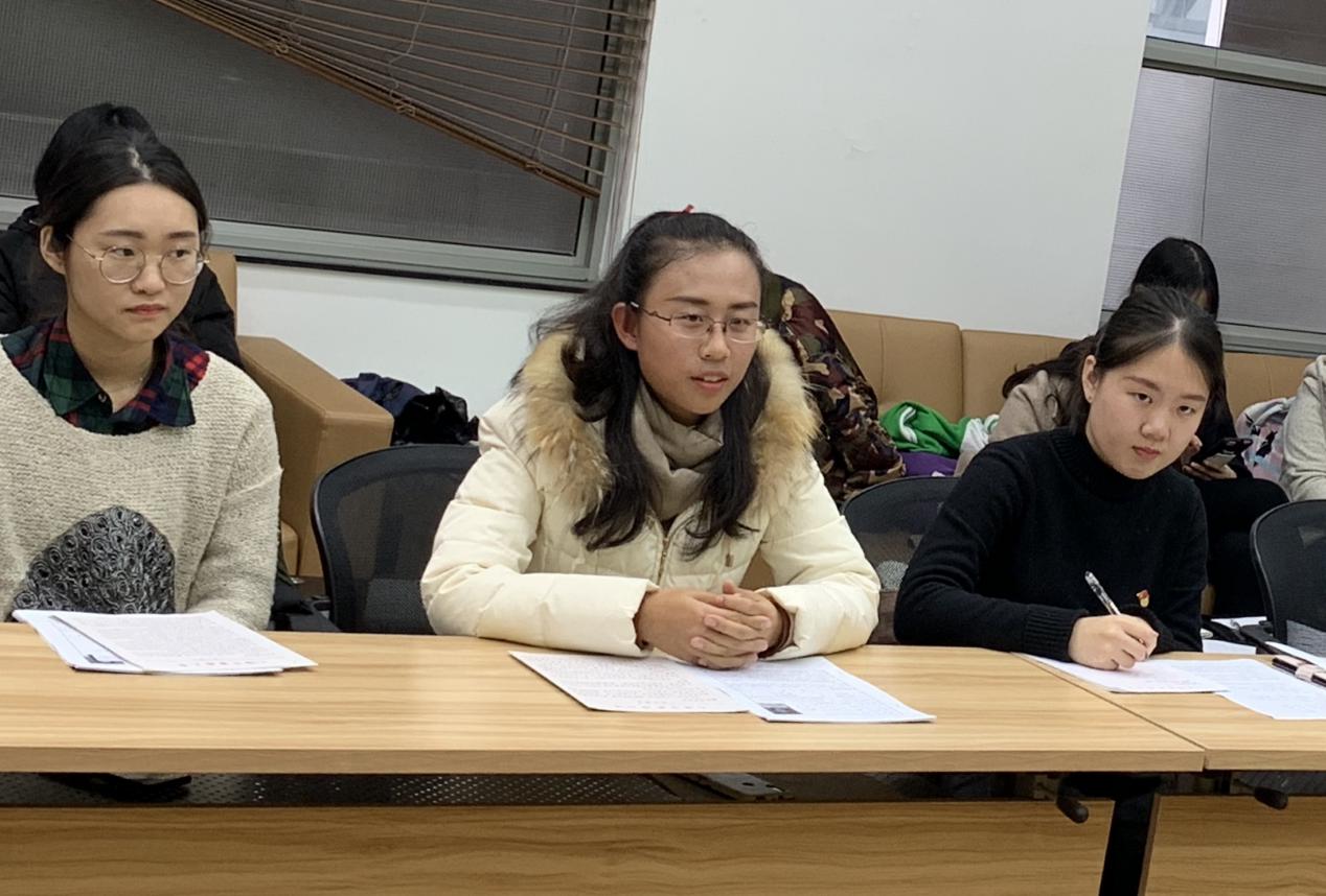 教工党支部书记谢燕也对大家提出几点要求:首先在学习工作的同时要不断地提高自身的思想境界,将党的精神与自身的工作和学习结合。其次,要学会对社会舆论和信息的正确判断。最后在工作和学习中要争取把自己的能力发挥到最大,以实际行动争取早日成为一名正式共产党员。