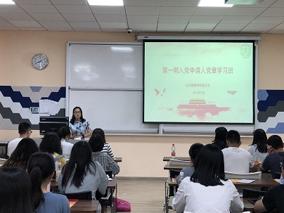 开班仪式后,干旦峰老师作《学习十九大党章,坚定理想信念》报告,带领入党申请人学习党章,从党章的发展历程、总纲、条文展开,学员们在学习党章内容的同时,对严格要求自身、坚定理想信念有了一定的认识。