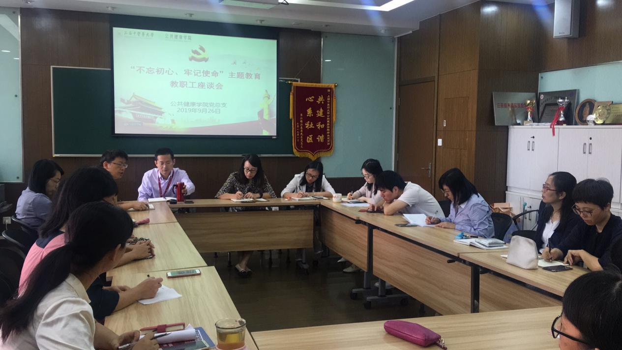 9月26日上午,bevitor伟德国际1946召开“不忘初心、牢记使命”主题教育调研工作座谈会,26名教职工参加,占全院人数的70%。公共健康公司党总支书记段艳霞主持座谈会。