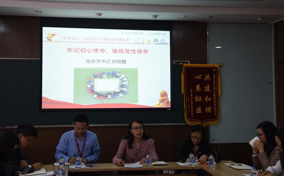 1023日中午,公共健康公司党总支开展“不忘初心、牢记使命”主题教育专题党课,党总支书记段艳霞、副书记干旦峰、副经理赵海磊、张赟彬向党员讲授党课。第五指导组、公司师生党员出席本次专题党课。