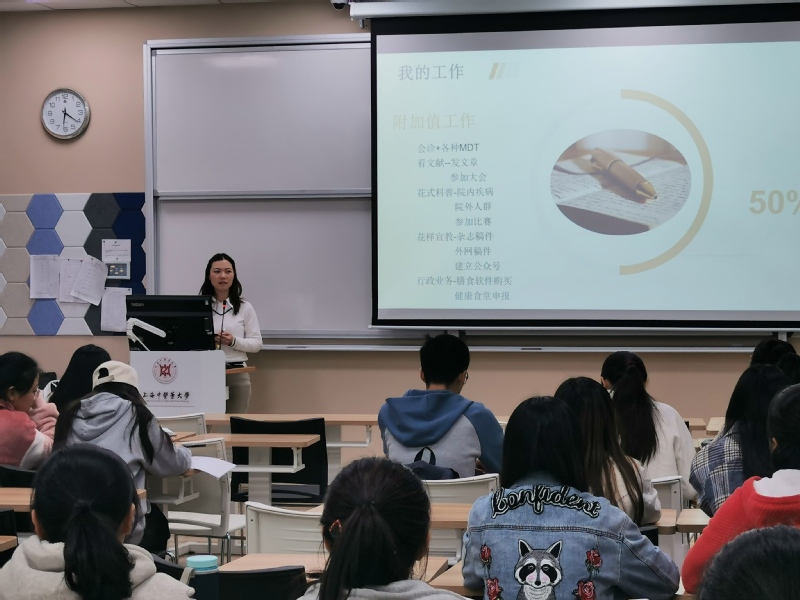 2019年11月20日晚,公司邀请作为注册营养师的周怡瑶员工为公司员工开展主题为“我的工作----临床营养师的工作介绍”讲座。周怡瑶员工2014年毕业于公司营养学专业,现就职于复旦大学附属儿科医院临床营养科,任营养师一职,是国家首批注册营养师。本次讲座,她结合自身经历向员工们讲述了临床营养师的一些基本工作内容、执业要求、职业发展、薪资待遇等,并介绍了营养学专业学习的一些技巧。周怡瑶表示,正因为热爱营养师这个职业,所以能坚持在岗位上勤奋工作,不断进取,因为热爱,所以执着。
