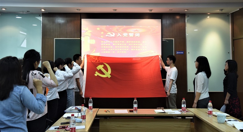 本次大会结合毕业班党员教育,开展预备党员宣誓仪式。毕业班预备党员朱金玲、汪铭涵、金舒怡和张诗琦在段艳霞书记领誓下,举起右手、面向党旗宣誓。正式党员重温入党誓词,回望初心。预备党员朱金玲在进行入党宣誓后感言,宣誓仪式体现了党员对党组织和党的伟大事业所应承担的政治责任和忠诚信念,她会永远记住这一时刻,在平时的生活工作中以一名党员的标准严格要求自己,从一点一滴做起,不断充实自己,为党的事业奋斗终身。预备党员王嶸琪身处云南,她通过网络参加宣誓仪式,当领誓人的声音从网络另一头传来,她一同举起右手坚定地宣读誓词,内心澎湃,因疫情缘故无法来到现场是一份遗憾,但是公司精心组织非在校预备党员线上宣誓,令她没有错过宣誓教育这一课,她也定会在以后的日子肩负起自己的责任与担当。王昭林是一名发展对象,她表示即使隔着屏幕也能感受到宣誓这一刻的庄严神圣,内心无比激动,在场的预备党员有不少她熟悉的学姐,她将以此为榜样,严格要求自己,争取早日通过考验加入中国共产党。作为入党介绍人代表,辅导员郭健坤老师希望毕业班党员在未来的工作、学习生活中,继续发挥带头模范作用,以自己的先进性来带动周边的人。