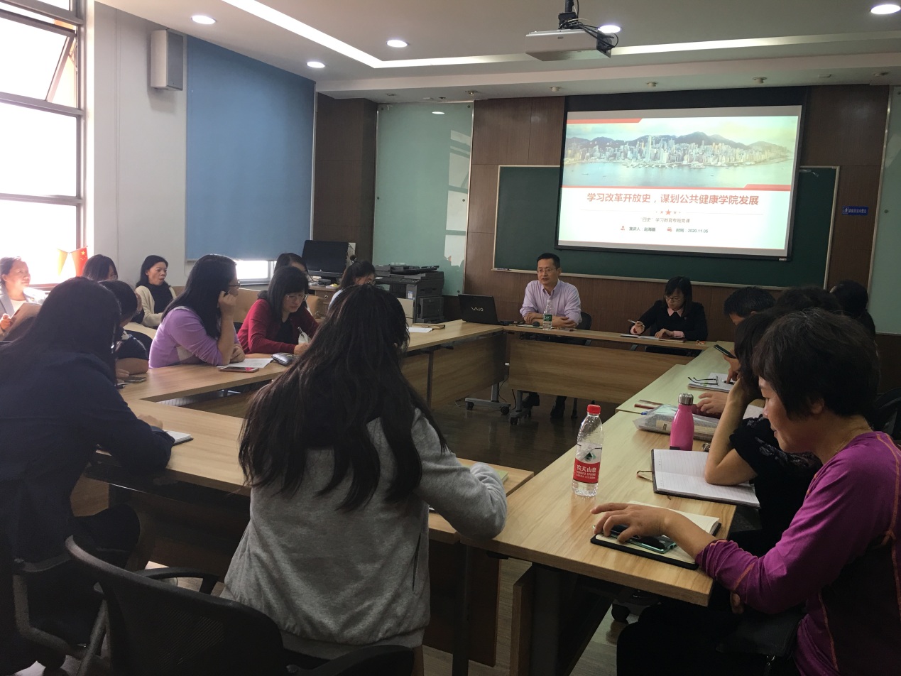 最后,赵经理结合四史学习体会,分析了公司发展中面临的机遇和挑战,对公司的发展使命即传统与现代结合、服务公共卫生与健康、提升人民健康水平与幸福感,结合三个专业的不同特点思考公司的发展方向,提出要以纵向连接、横向联合、突出特色、激励人才的发展策略通过未来五年的发展,使公司成为上海地方高校中培养具有中医药特色的基层公共卫生和健康管理人才基地之一的目标愿景。全体教职工备受鼓舞和振奋,汲取改革开放的额精神财富,以敢为人先的创业精神,时不我待的奋斗精神,勇于开拓的创新精神,舍我其谁的担当精神继续书写精彩篇章。