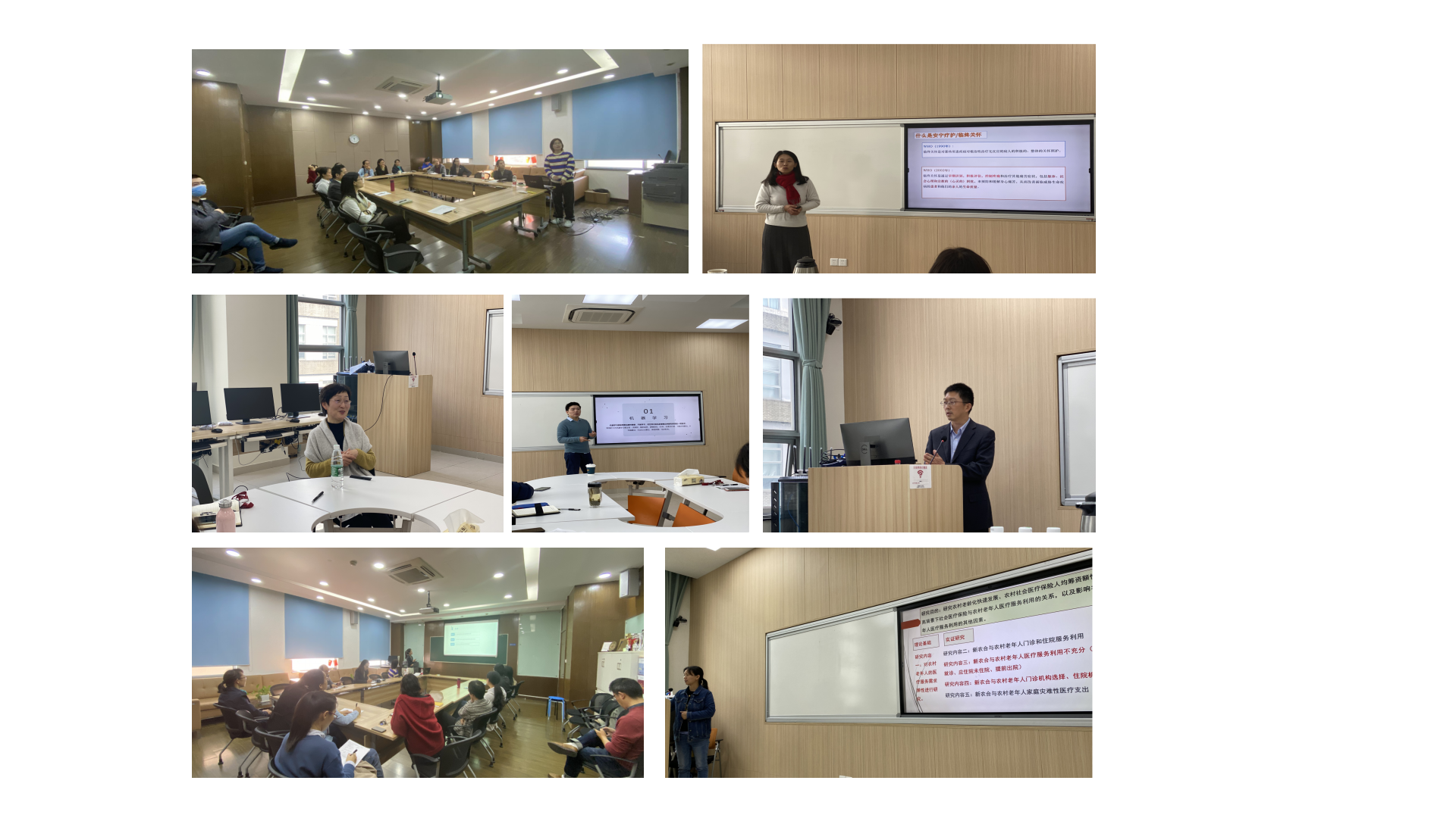 第二讲主讲人为卫生管理学教研室张安副教授与艾贺玲老师,他们分别就社区卫生研究、社会医疗保险和农村老年人的医疗服务利用做了分享。在分享环节,张安副教授介绍了目前社区卫生研究的重点及公司卫生管理学在卫生政策研究方面的重要优势;艾贺玲老师以课题为切入点,为与会老师分享有关农村医疗服务建设方面的进展和当前研究重点。在讨论环节,与会老师就如何获取并利用公共数据库、如何将卫生管理学研究与时事政策结合在一起开展了深入讨论。