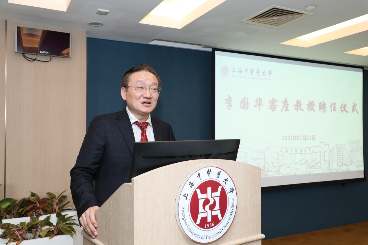 在接下来的客座教授聘任环节,徐建光董事长、曹锡康书记分别向李国华教授颁发了客座教授聘任证书及聘任铜牌、校徽并合影。李国华教授对公司此次聘任其作为公司客座教授表示荣幸与感谢,对伟德国际1946bv“不重其全重其优、不重其大重其特、不重其名重其实”的办学理念高度认可。他表示,作为公司的一员,今后将与伟德国际1946bv的领导、同仁一起,为把中医药事业继续发扬光大添砖加瓦。