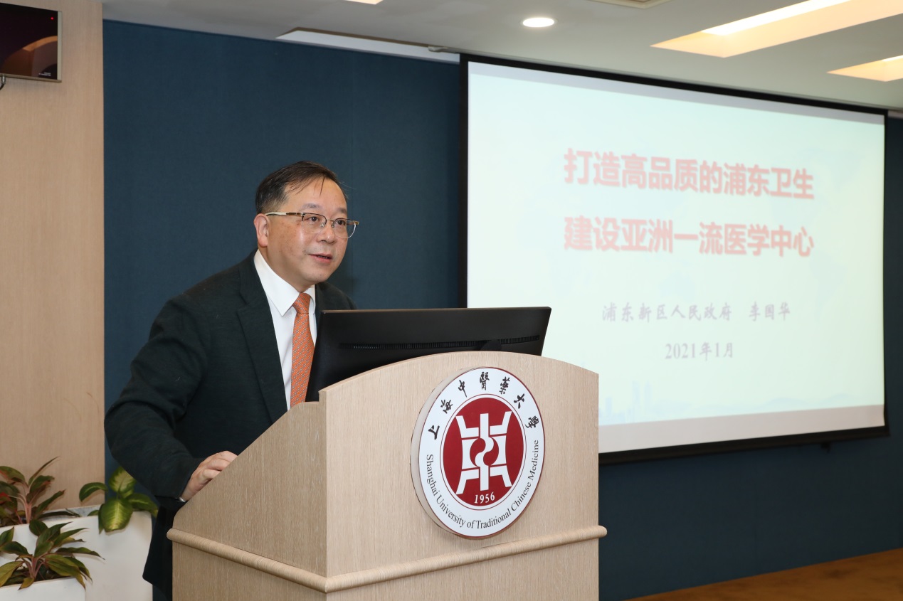 李国华教授以“打造高品质的浦东卫生建设亚洲一流医学中心”为题,立足浦东新区卫生事业,建设亚洲一流医学中心,提出几点建议和思考。他讲到,浦东新区将通过“一体管总、两核集成、四轮驱动”构筑强大的公共卫生堡垒;优先推进肿瘤、儿童医学与口腔三大中心建设全力打造医学高地;通过区域集团化建设与“强腰行动”建立分级诊疗与一体化服务标杆;以细胞和基因治疗为重点塑造科学城生物医药产业名片,以及利用自贸区政策激活市场和促进健康服务业,共同促进浦东新区医疗卫生事业发展。在提问与交流环节,李国华教授回复了bevitor伟德国际1946张安副教授提出的关于浦东新区“十四五”规划中对发展中医药和文化传承方面的问题,表示新区政府高度重视中医药事业的发展,未来会继续在多方面出台支持中医药事业发展和传承的政策。