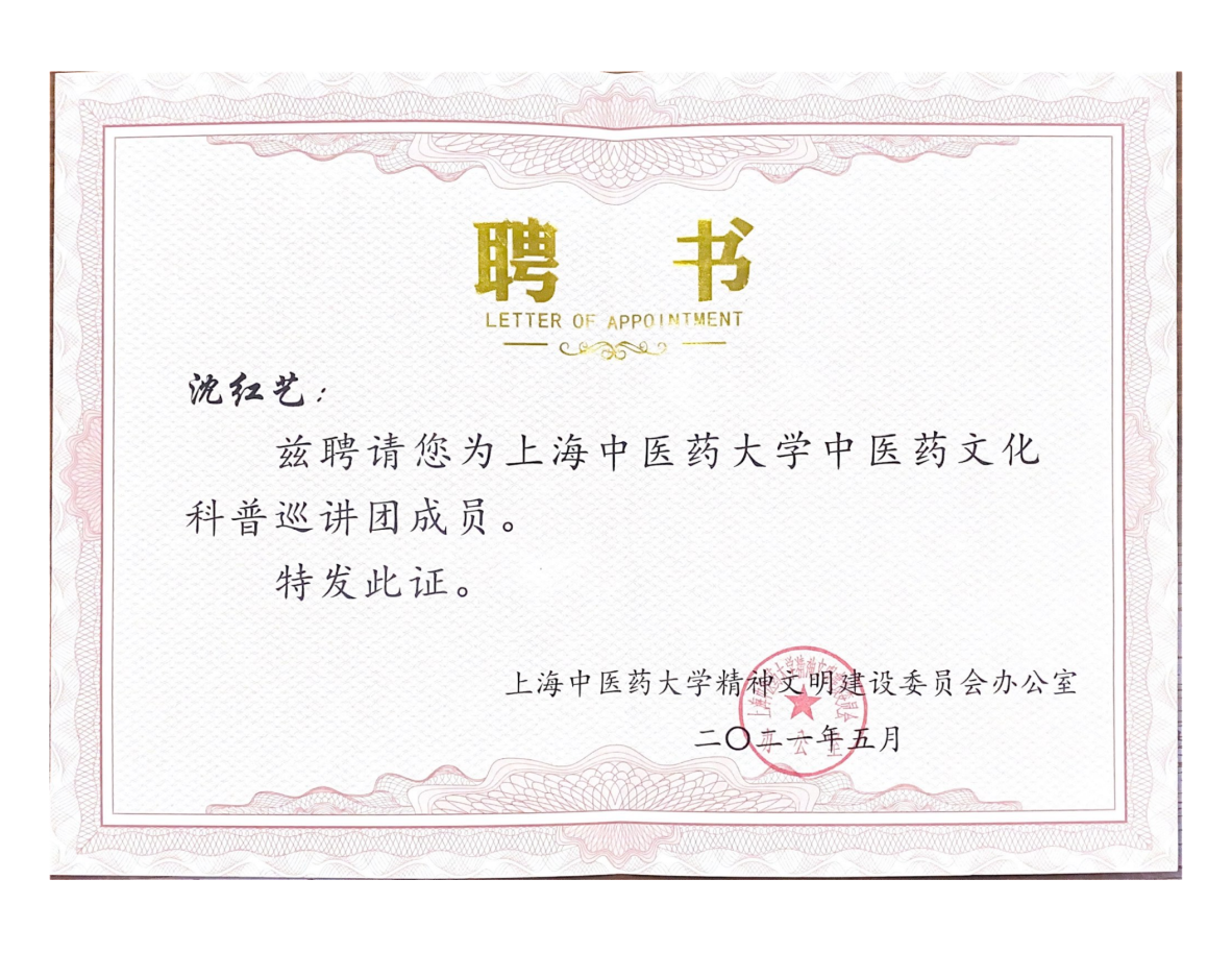 为深入推进公司系统精神文明建设,大力推进“我为群众办实事”实践活动,深入开展群众性主题宣传教育活动,依托公司中医药文化研究和传播的优势,校文明办聘任一批“伟德国际1946bv文化科普专家”,并于2021年5月26日校精神文明表彰大会上予以表彰。公司沈红艺研究员获评“伟德国际1946bv中医药文化科普专家”称号。