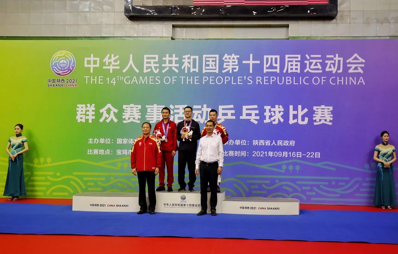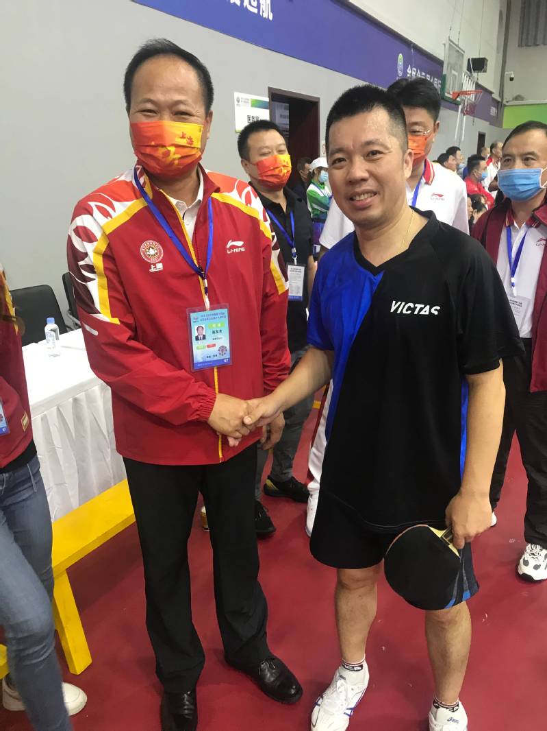 9月22日,在第十四届全运会群众赛事活动乒乓球比赛项目中,公司谢国群副经理作为上海代表队的一员,奋力拼搏,发挥出色,夺得40-49岁组男子单打比赛铜牌。上海市体育局赵光圣巡视员观摩了比赛,对谢国群副经理的获奖表示祝贺。