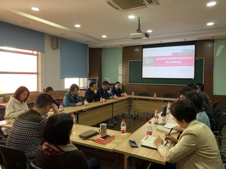 首先,上海同济生物王云华董事长介绍了企业的相关业务,目前企业主要从事生物医药、营养食品、保健食品和膳食补充剂等健康产品的研发,并且自主研发了几款具有一定市场知名度的主打保健品,面对如今竞争激烈的市场,迫切需要开发培育顺应市场需求的新产品,围绕新资源食品原料、药食同源食品原料等方向进行研发,为企业从保健品开发向生物医药转型打下坚实的基础。希望通过产学研合作,铸造中国现代生物医药和大健康产业具有国际竞争力的高科技技企业品牌。戴秋萍教授提出:在产品研发过程中希望能有在成分提取工艺领域有所建树的专业院校对同济生物提供技术上的支持。药食同源产品创新过程中的成分提取能力、中药脱毒技术是目前企业亟需解决的问题。