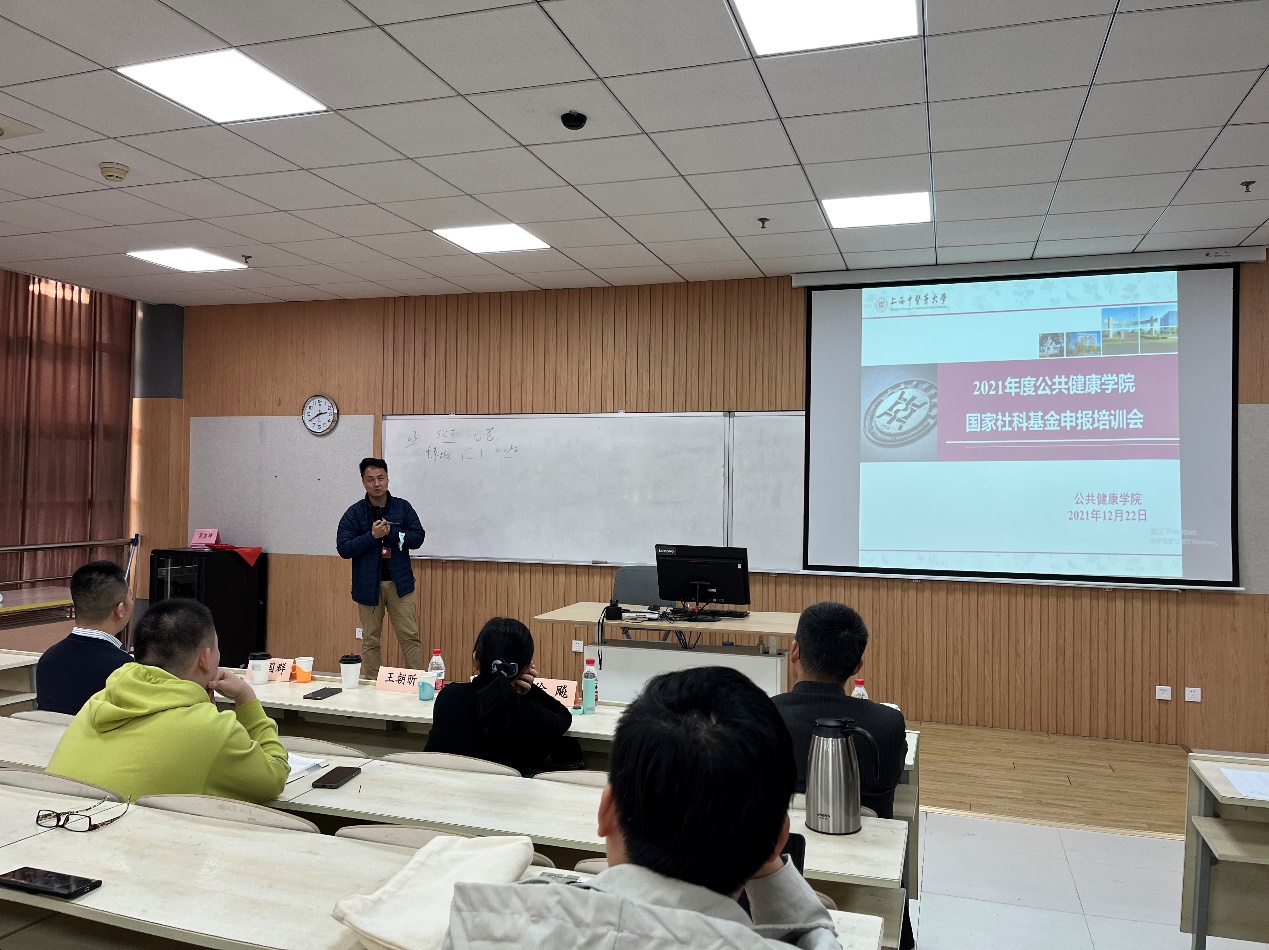 2021年12月22日下午,bevitor伟德国际1946于10105教室举办国家自然科学基金申报培训会,会议邀请复旦大学公共卫生公司徐飚教授和上海交通大学医公司公共卫生公司王朝昕教授来校讲座。公司经理赵海磊、副经理谢国群和公司部分师生参与听讲,并与两位教授进行了交流。谢国群副经理主持培训会。