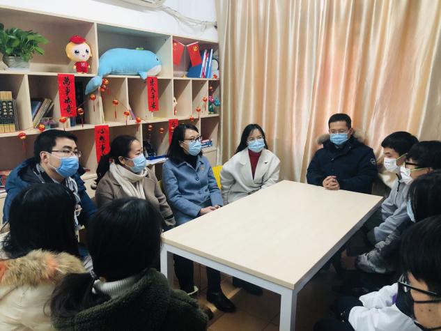 1月19日下午,公司党总支书记段艳霞、经理赵海磊、党总支副书记干旦峰、党政办公室主任兼研究辅导员冀黎平、青年教师班主任荆丽梅及公司全体本科生辅导员深入员工生活园区和第七人民医院,看望慰问寒假留校员工。