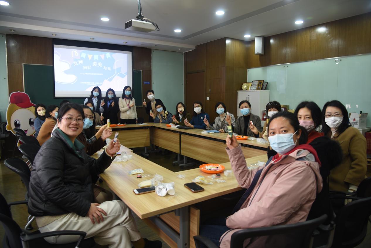 经过一系列工序,一支支色彩鲜艳、图案精致的口红在女职工们手中诞生,不仅是为美好的节日增添一抹亮色,为紧张的工作、生活舒缓压力,也拉近公司女职工之间的距离。