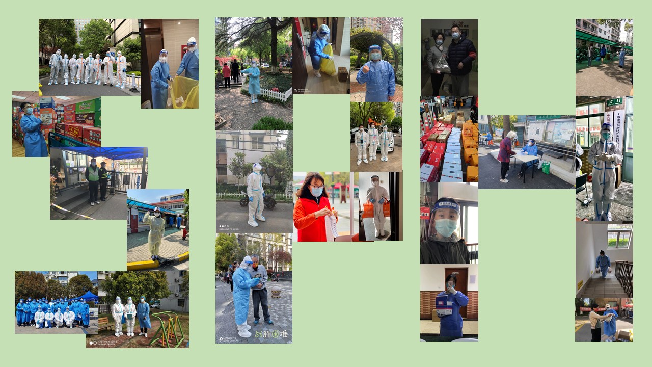 身在何处,奉献便在何处。“关键时刻冲得上去,危难关头豁得出来,才是真正的共产党人”。公司在沪党员百分百落实“双报到”,在社区抗疫阵地上发挥先锋模范作用,52名党员共计参与志愿服务400多人次,人均超过8次。公司党支部书记带头,带领党员冲锋在前,号召支部群众携手抗疫。身为公卫事业建设者中的一份子,公司全体师生深知责任之重大。3名辅导员、2名教师和大部分员工封控于校园,其余师生封控于居住地,不论身处何处,从核酸和抗原检测到物资搬运派发,从社区消杀到外出配药,从订购保供物资到楼组管理,还有特殊群体关心关爱,他们的身影活跃在各种类型的志愿服务岗位上。教工支部书记谢燕参与小区核酸检测统计、物资派发,员工支部书记冉秋进驻封控员工宿舍楼,教师党员李倩留校参与核酸检测工作,民主党派教师于亮关心楼栋独居老人……在本职工作、专业学习之余走上抗疫一线的公健师生越来越多,以实际行动践行公卫人的使命与担当。