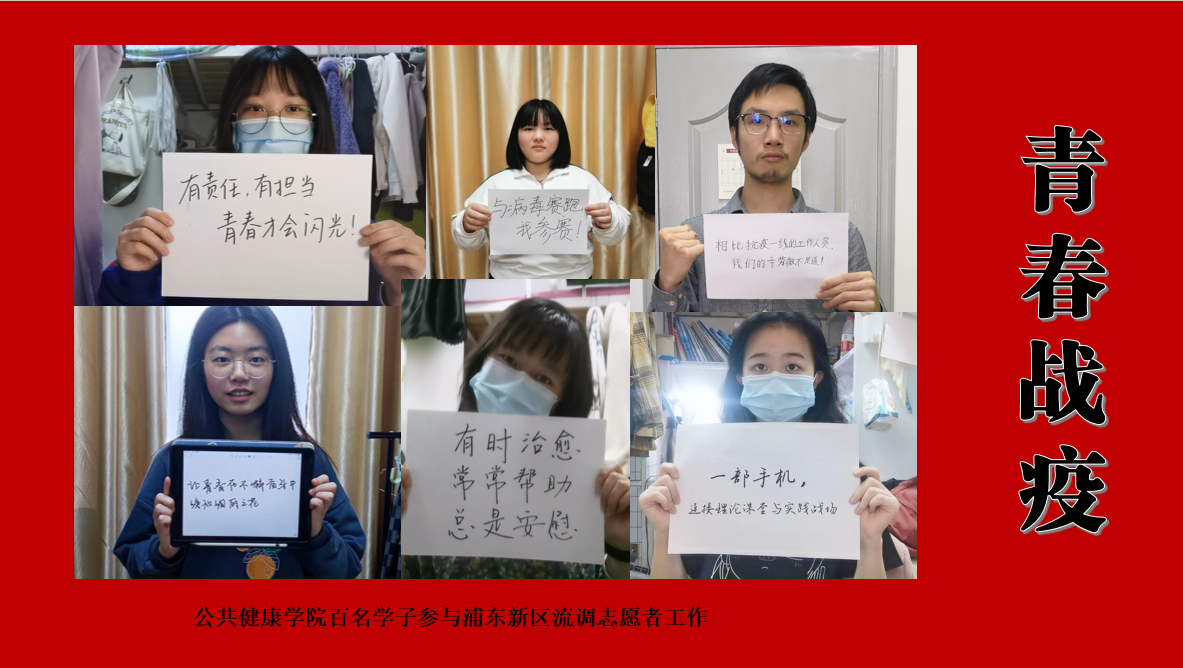 没有一个冬天不可逾越,没有一场“疫情”不可战胜。身为新时代青年、公卫学子,勇于担当历史使命,在这场疫情防控阻击战中力所能及地去付出、去努力、去奋斗,让最美好的青春在祖国和人民最需要的地方绽放绚丽之花!