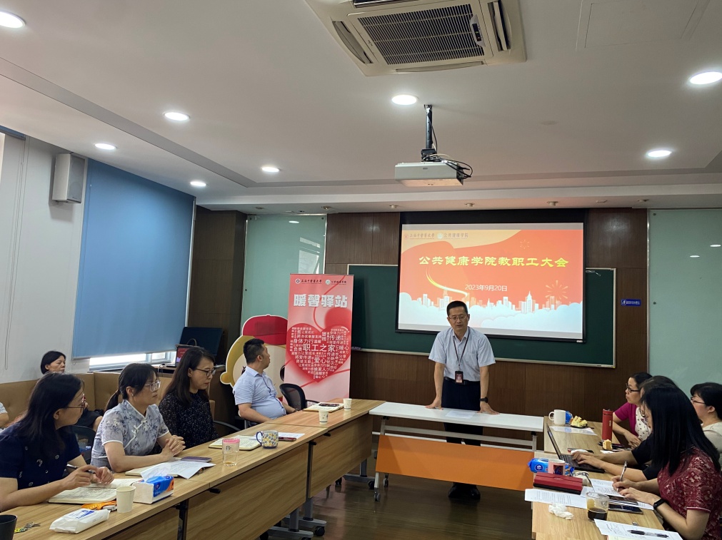 赵海磊经理对2023年上半年公司各项工作取得的进展做了回顾和总结,向全体教职工传达新学期公司重点工作。他指出,下半年我们要继续深入学习贯彻习近平新时代中国特色社会主义思想和党的二十大精神,全面落实公司党委各项教育工作部署,坚持立德树人根本任务,围绕教育部本科审核评估和公共卫生硕士专项评估积极开展工作。通过举办中医药和公共健康青年学者论坛,加快推进与国内外高水平大学交流合作,吸引高层次人才,提升公司综合实力。