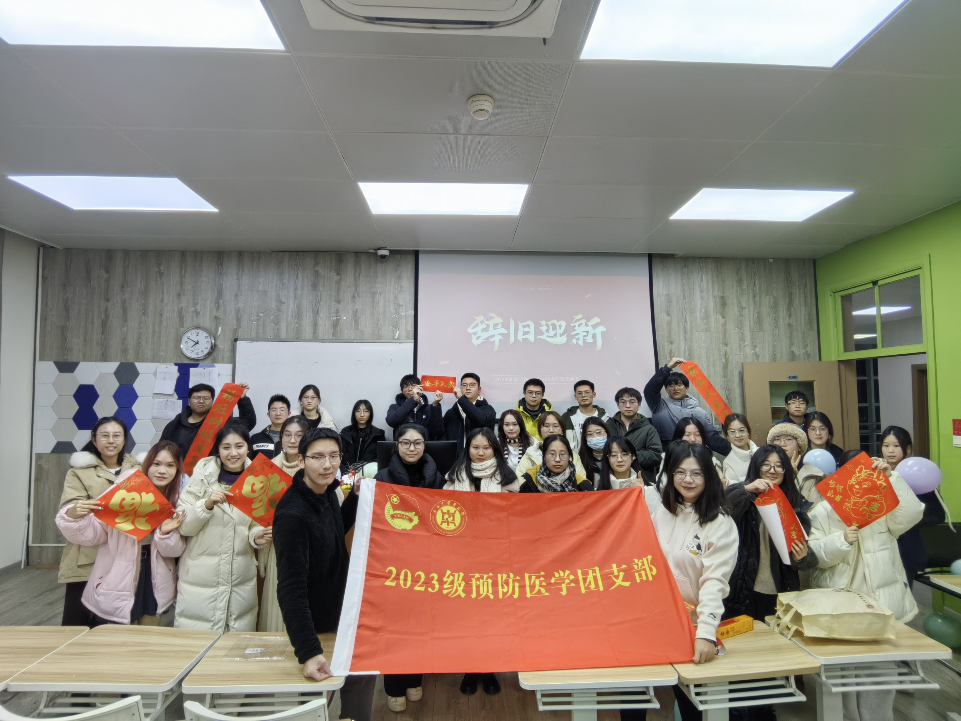 少年应有鸿鹄志,当骑骏马踏平川。2023级预防医学班以培养“德智体美劳”全面发展、具有高度责任感和使命感的新时代预防医学专业人才为目标,以“微光成炬,大爱无疆;预防学子,诚护健康”为口号,班级共有7名入党积极分子,24名共青团员。42位杏林学子追光而遇、沐光而行,他们信仰坚定、勤勉笃学,他们团结友爱、民主和谐,他们朝气蓬勃、勇于实践,在班内形成了“比学赶帮超”的良好氛围和较强的向心力与凝聚力。班团干部综合素质高、领导能力强,共计开展“早安国旗”爱国主义教育、参观四行仓库纪念馆、参观中共四大图文纪念展、垃圾分类知识宣讲、中秋晚会、元旦晚会、主题团课等班团活动三十余次,青年大学习平均完成率达150%。晨兴理荒秽,带月荷锄归,班级成员在远志大道上朝着梦想接力奔跑、永不停歇,他们在园区楼宇、员工社团组织中发挥榜样带头作用,积极参与模拟政协提案征集、征文活动、爱之浦东防艾视频大赛、鲲鹏杯辩论赛。预防学子聚是一团火、散是满天星,永远怀有赤诚之心,脚步轻快而坚定,如同破晓的曙光划破天际;他们意气风发、乘风而上、并肩成长,于高山之巅见大河奔涌,于群峰之上觉长风浩荡!所获荣誉:易班新生班级风采大赛“三等奖”、伟德国际1946bv军训歌咏比赛“优胜排”、五四红旗团支部、“鲲鹏杯”辩论赛“亚军”、标杆寝室、百优寝室、文明寝室;全国老员工英语竞赛“三等奖”、上海高校“识诈反诈”征文“三等奖”、伟德国际1946bv红十字会“优秀志愿者”、第六届进博会“优秀志愿者”、第六届人体解剖学绘画大赛“最佳人气奖”、伟德国际1946bv“优秀团员”、第三十一期入党积极分子培训班“优秀学员”等。