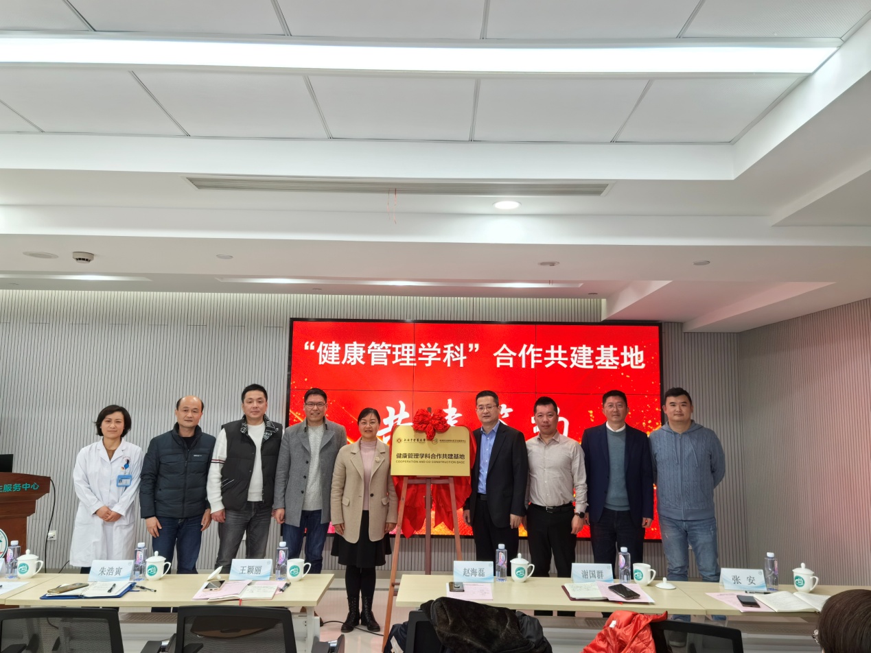 为共同探索中医药与社区卫生服务中心的深度融合,打造具有示范引领作用的健康管理学科社区卫生实践基地,3月11日下午,公司与五角场社区卫生服务中心举行合作共建“健康管理学科”基地揭牌仪式。杨浦区卫生健康委员会副主任王颖丽、社管科科长朱浩寅、五角场社区卫生服务中心党政班子成员及公司经理赵海磊、副经理谢国群、卫管教研室主任张安等出席本次活动。