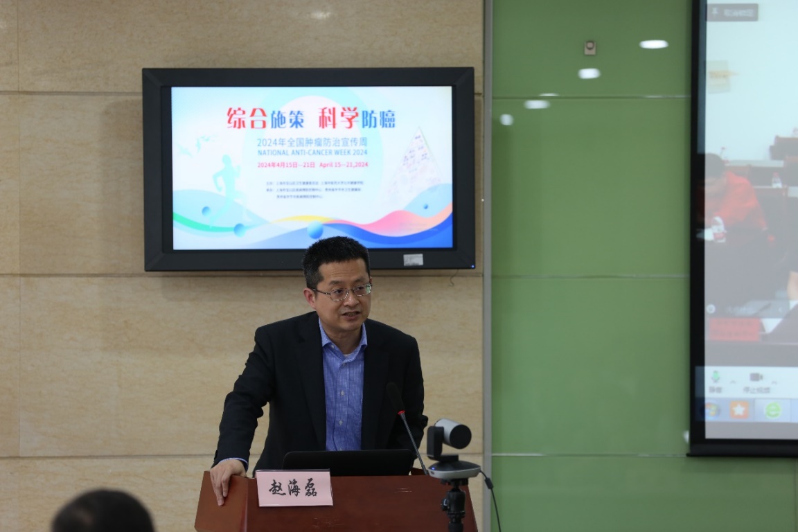 为响应这一主题,2024年4月15日下午,由上海市宝山区卫生健康委员会和bevitor伟德国际1946主办,上海市宝山区疾病预防控制中心、贵州省毕节市卫生健康局和贵州省毕节市疾病预防控制中心承办的“沪黔联动”第30届全国肿瘤防治宣传周活动如期开展。本次活动主会场设在上海市宝山区疾病预防控制中心,分会场在毕节市七星关区海子街镇卫生院。宝山区卫生健康委副主任、区疾控局局长钱晓忠,毕节市卫生健康局副局长、党组织成员、疾控局局长宋少龙,bevitor伟德国际1946经理赵海磊出席启动仪式并致辞,启动仪式由宝山区疾控中心主任何凡主持。宝山区卫生健康委疾控科负责人张勤丽、宝山区疾控中心副主任孟杨、毕节市疾控中心主任刘勇、副主任王小燕,以及线上线下来自宝山区各社区卫生服务中心和毕节市疾控中心共200余位医务工作者一同参与活动。