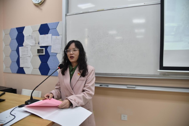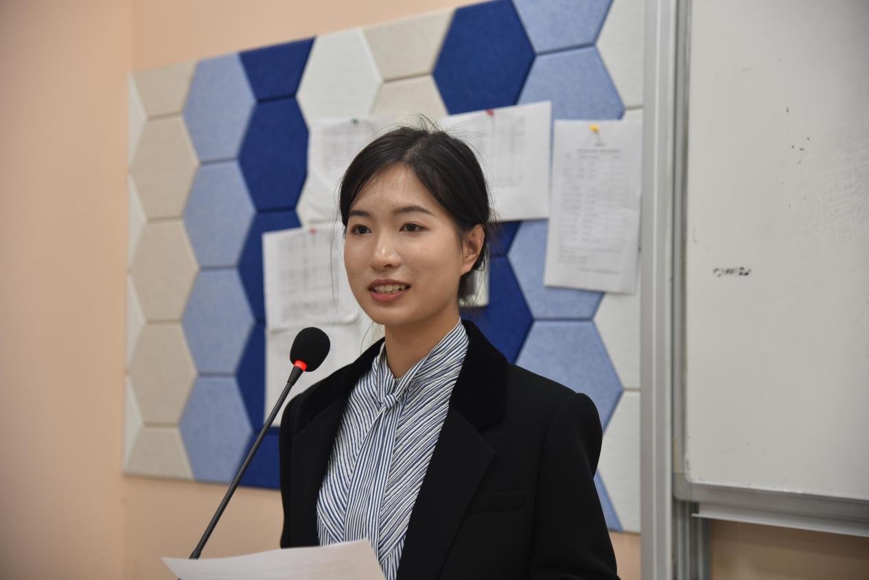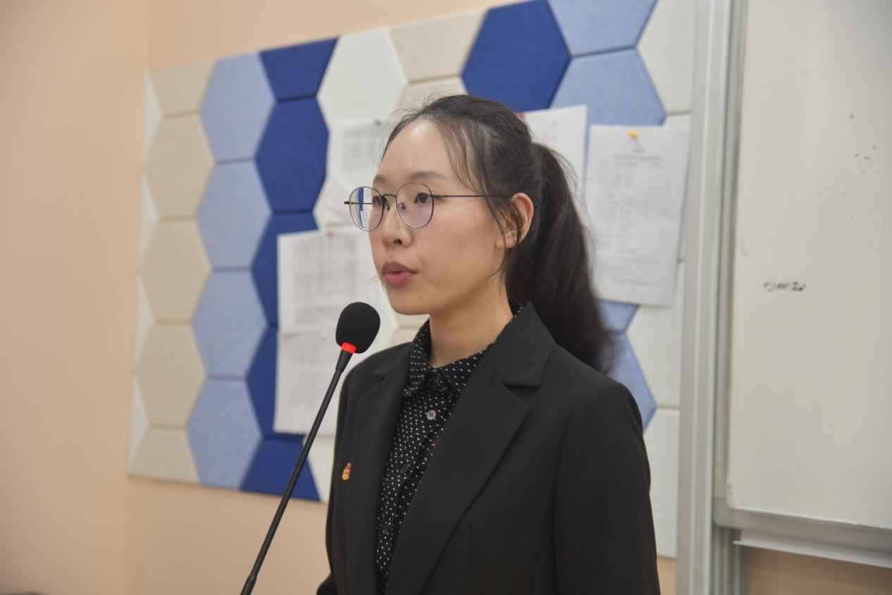 最后,干旦峰老师发表了寄语,她对上一届主席团的工作成绩表示肯定,对新当选的同学表示热烈的祝贺,同时对新一届主席团成员提出希望:第一,明确职责,团结协作。员工会全体成员要精诚团结,合理分工,共同努力,组建起一支高素质、高活力、高凝聚力的员工会干部团队,开创员工会工作新局面;第二,主动学习,提高素养。员工会干部要养成勤奋学习的好习惯,树立“在学习中发展”的理念,以读书求知和实践创新为核心,加强学习、实践、创新意识;第三、无私奉献,服务同学。员工会干部要有强烈的责任感和主人翁精神,以服务公司发展、服务同学成长为己任,切实履行好自身的职责,既做好上情下达的桥梁纽带,又做好关心同学,零距离倾听同学的心声,及时回应同学关心的热点问题。