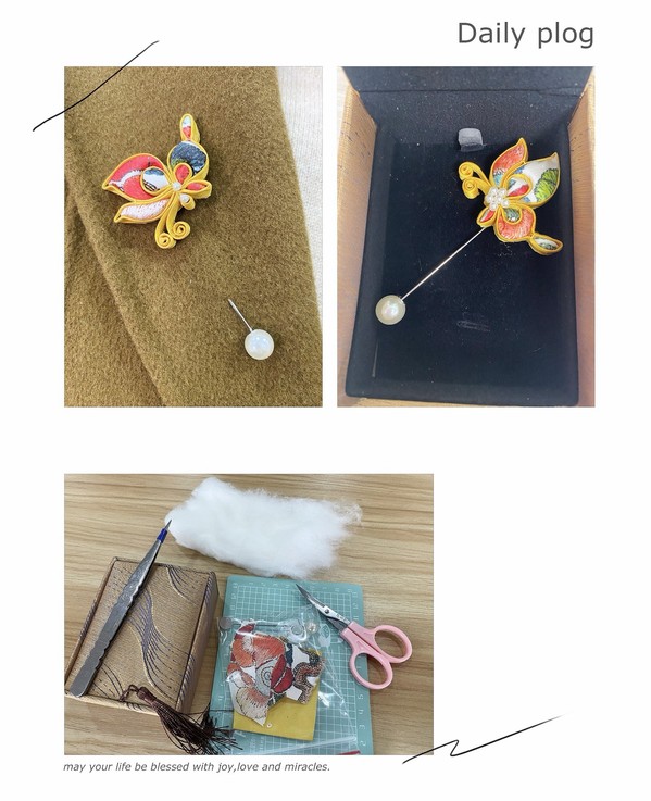制作过程中,大家全神贯注,穿针引线、精心盘绕、造型固定,尽管起初有些手忙脚乱,但在大家的互相交流和帮助下,一个个精致的蝴蝶造型盘扣胸针逐渐成型,每一个步骤都凝聚着女教职工们的专注与热情。大家在体验传统手工艺魅力的同时,也深深感受到了中华传统文化的博大精深。