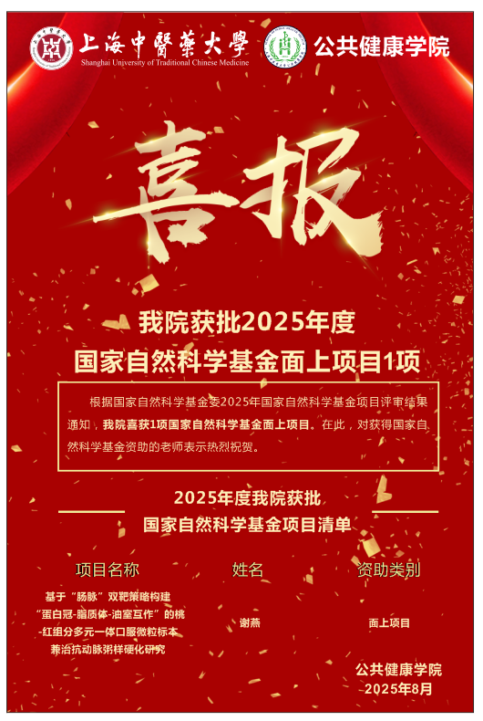 8月27日,国家自然科学基金委员会正式公布了2025年度国家自然科学基金集中受理阶段评审结果,公司健康营养研究室谢燕研究获资助面上项目1项