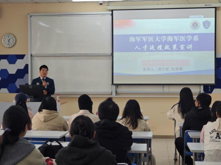 周方斌副教授围绕海军医学系人才延揽政策和招生政策,从人才需求、福利待遇和发展前景等方面展开详细解读。重点介绍了直招军官与文职人员的招录岗位和招聘途径。会中提到,海军医学系面向公共卫生、预防医学等专业员工开放岗位,要求毕业生具备扎实的专业基础与家国情怀,尤其欢迎熟悉传染病防控、特种医学研究的人才加入。针对有志于深造的员工,周教授详细阐述了博士后引进政策。此外,他还分享了军队医学人才的成长路径——从临床实践到科研攻关,从基层服务到国防保障,职业发展通道清晰且多元。