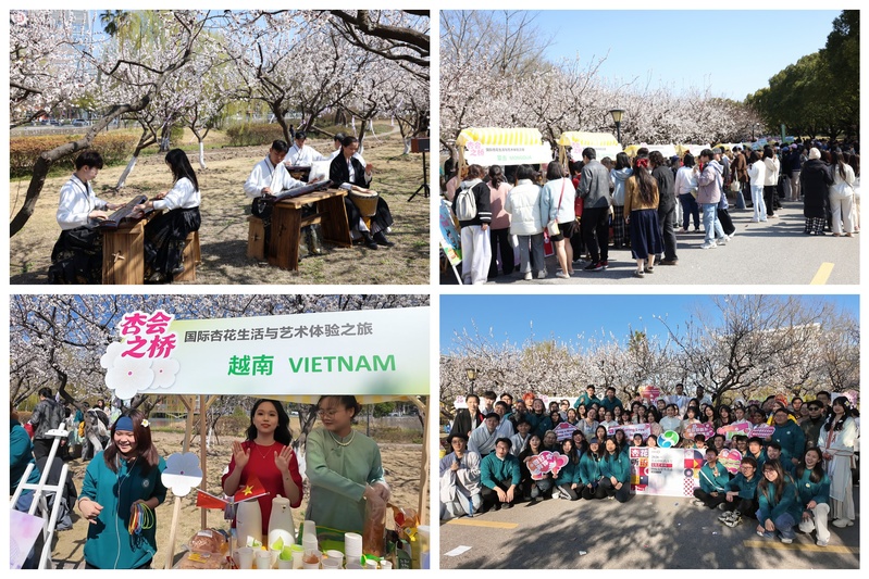“杏会之桥”国际杏花生活与艺术体验之旅在一曲轻快的笛子独奏中开启!200多名国际员工穿梭其中,来自11个国家的职工身着各自国家民族服饰,展示本国杏花元素与健康理念。手工互动体验区成为跨文化交流的实践场所,以“指尖上的文明互鉴”为设计理念,轮流展演杏花茶引、杏仁点心、杏味香囊等药食同源技艺,并现场教做杏花书签、杏花香扇,把上中医的春天名片递向世界。